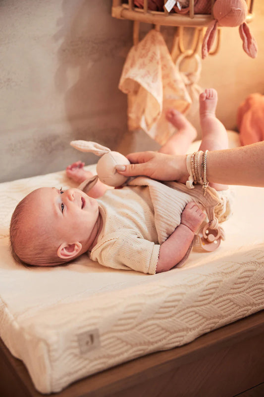 Knuffeldoekje met drukknopje zand • Rammelaartje