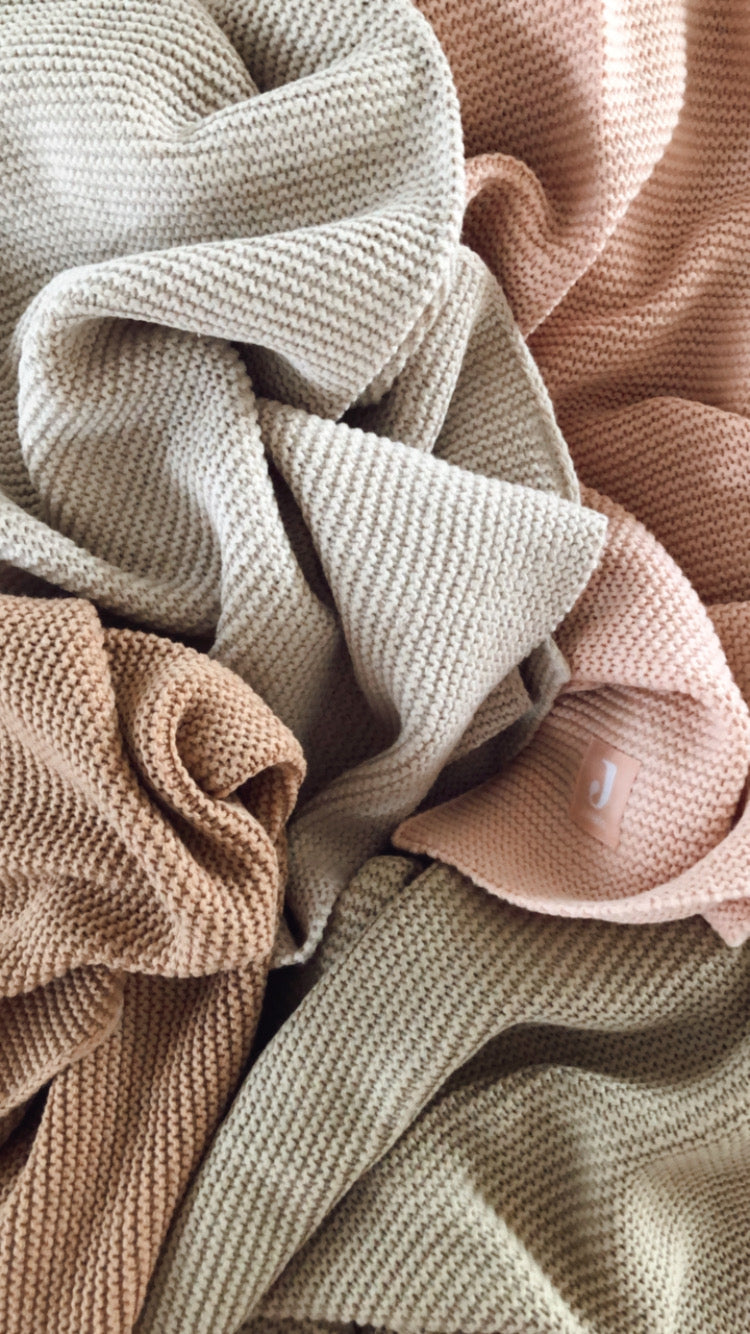 Soepele gebreide dekentjes. Perfect voor in het bedje, kinderwagen of als omslagdoek rond je baby.